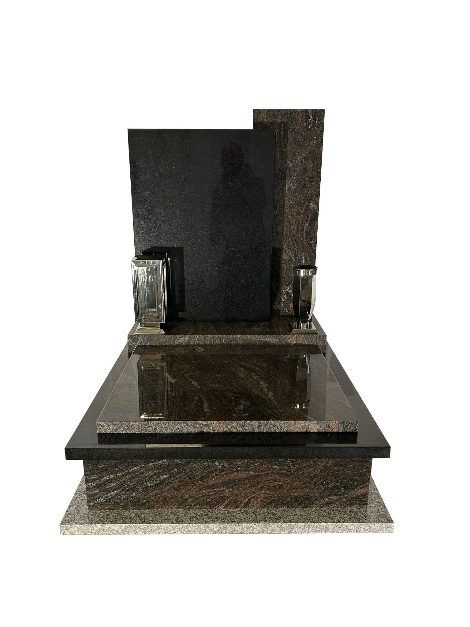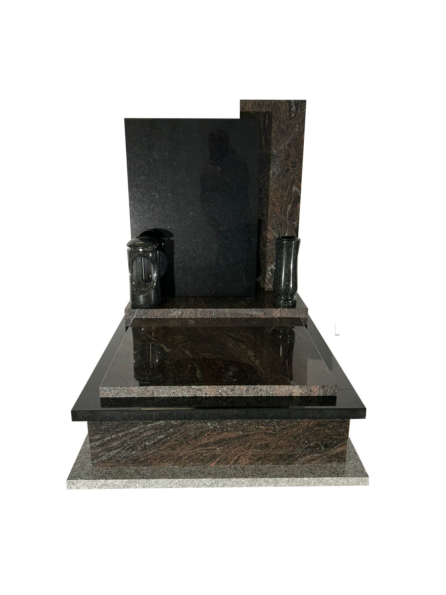 FORMÁT 50 X 60 CM, součástí ceny je pomník, podkladní chodník ze žuly, nerezová lampa a váza, plastový box na 4 urny, nápis v rozsahu 30 znaků, montáž na hřbitově v Liberci či okolí do vzdálenosti 15 km.